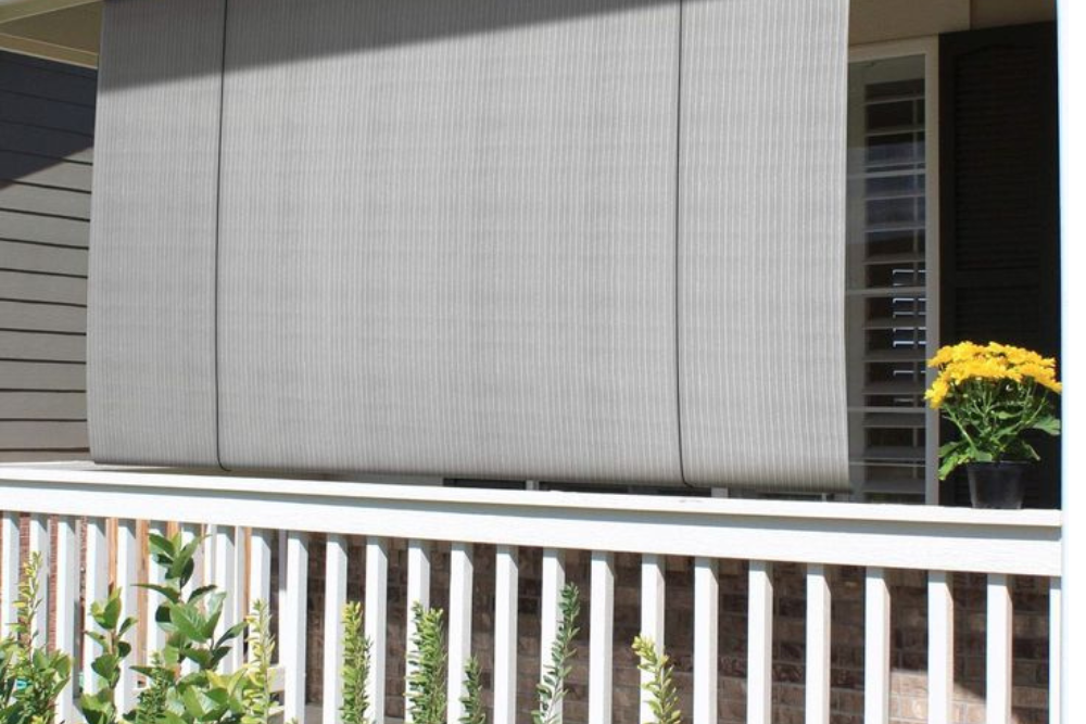 Stylish outdoor blinds protect spaces from sun and wind.